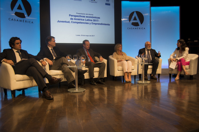 CAF -banco de desarrollo de América Latina-, en colaboración con la OCDE, Organización para la Cooperación y el Desarrollo Económico, y con CEPAL, Comisión Económica para América Latina y El Caribe, presentan Perspectivas Económicas de América latina 2017: Juventud, Competencias y Emprendimiento en Casa de América en Madrid.