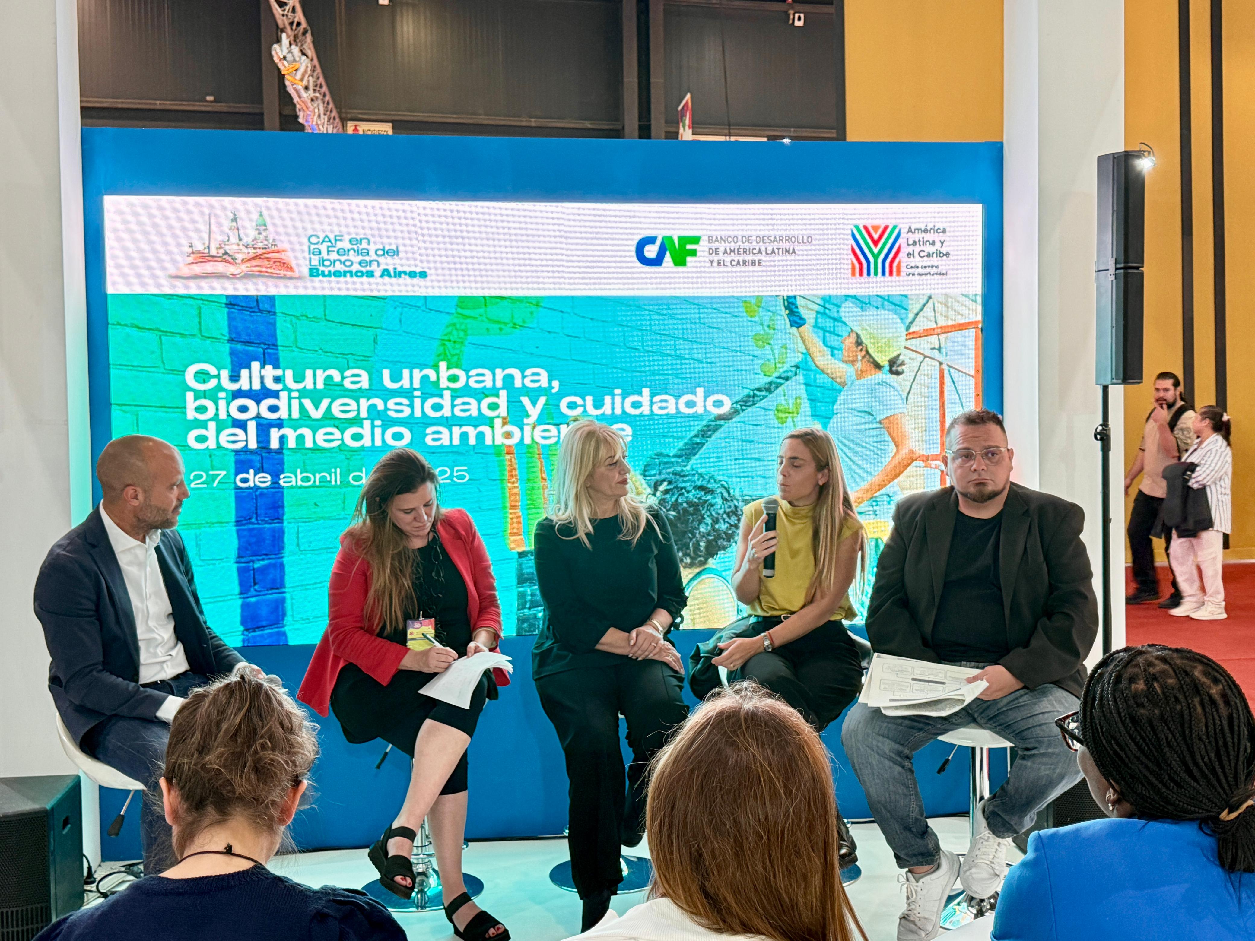 El conversatorio "Cultura urbana, biodiversidad y cuidado del medio ambiente" se realizó este domingo 27 en el stand de CAF. El encuentro exploró cómo los principales emergentes de la cultura urbana —rock, trap, murales, riña de gallos, entre otros— pueden convertirse en canales efectivos para impactar positivamente a las nuevas generaciones sobre temas ambientales críticos. En un contexto donde algunos de los desafíos ambientales más urgentes para la humanidad están siendo cuestionados, este panel buscó identificar canales de comunicación alternativos para que los jóvenes accedan a información contrastada a través de referentes locales cercanos a su realidad.