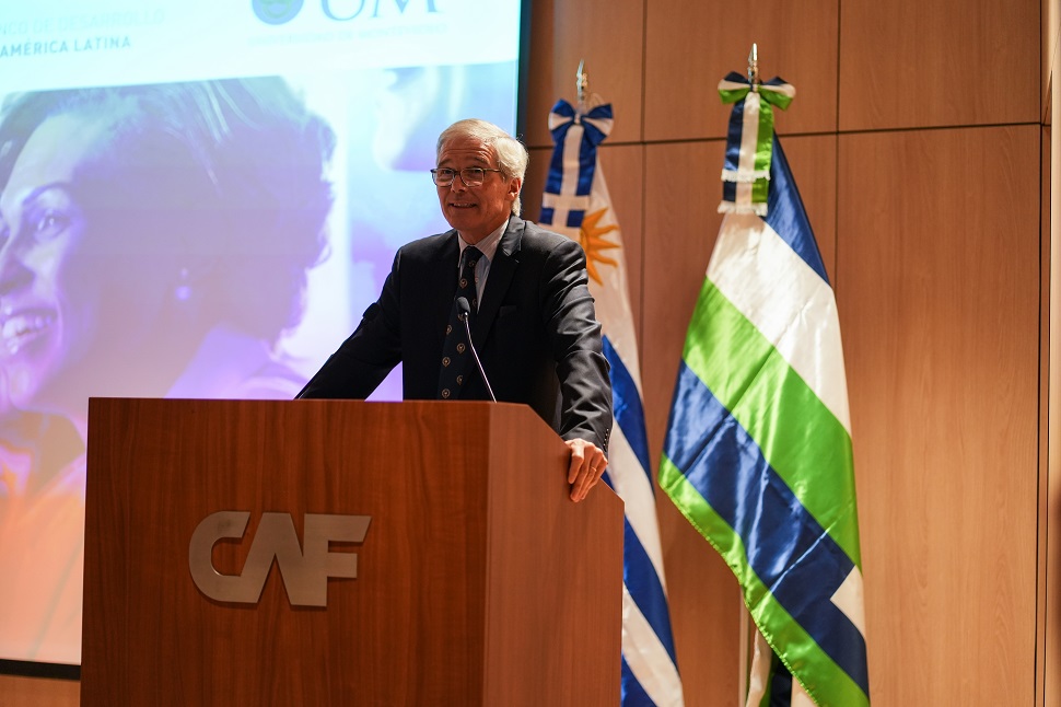 En el evento participaron Sergio Díaz-Granados, presidente ejecutivo de CAF; Christian Asinelli, vicepresidente corporativo de Programación Estratégica de CAF; Francois Borit, representante de CAF en Uruguay; Juan Manuel Gutiérrez Carrau, rector de la Universidad de Montevideo (UM); Alejandro Cid, decano de la Facultad de Ciencias Empresariales y Economía de la UM; y Matilde Antía, alcaldesa del Municipio CH en Montevideo, entre otras autoridades, estudiantes y docentes.