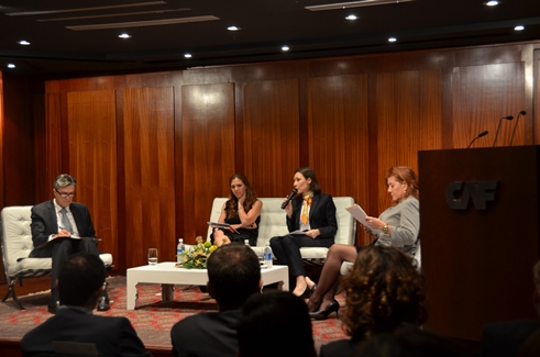 "CAF está comprometido con la promoción de la equidad de género en la región. Este compromiso se ve reflejado a través del impacto de los proyectos que financiamos, las cooperaciones técnicas que impulsamos, la generación de conocimiento y espacios de debate como estos que nos permiten discutir sobre la importancia de políticas públicas que fomenten una mayor participación de las mujeres en el mercado laboral y en el desarrollo de la región", afirmó Enrique García.