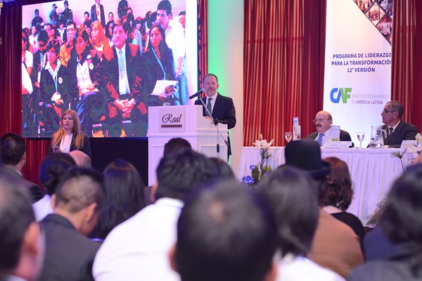Con el apoyo institucional de la Fundación IDEA y el asesoramiento académico de la Universidad de Salamanca (USAL), CAF -Banco de Desarrollo de América Latina- ejecutó en Bolivia la décimo segunda edición del Programa de Liderazgo para la Transformación, que forma a líderes del país en habilidades de gestión pública.
