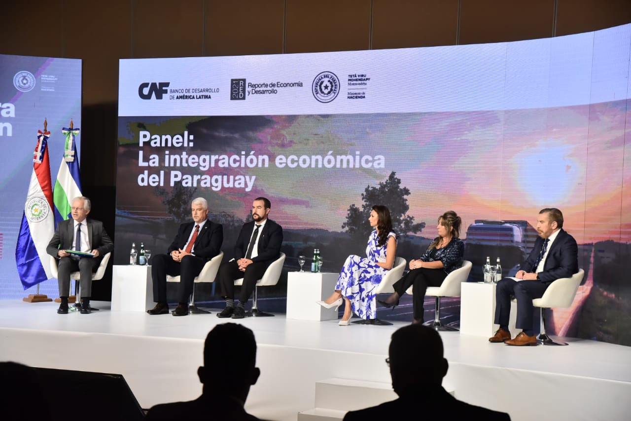 Después de la presentación del RED2021 se realizó un enriquecedor panel de discusión que contó con las intervenciones de Jorge Pedraza, secretario general de la CAN; Arnoldo Wiens, ministro de Obras Públicas del Paraguay; Iván Haas, viceministro de Economía; Carina Daher, presidenta de la Cámara de Empresas Maquiladoras del Paraguay; Sonia Tomassone, directora del Consorcio Ventanilla Única de Exportación (CONVUE); y junto con un equipo de Directivos de CAF liderado por Adriana Arreaza, gerenta de Conocimiento y directora de Estudios Macroeconómicos, Joel Branski, representante de CAF en el Paraguay, Jorge Srur, gerente Regional Sur y Ernesto Schargrodsky, director de Investigaciones Socioeconómicas.