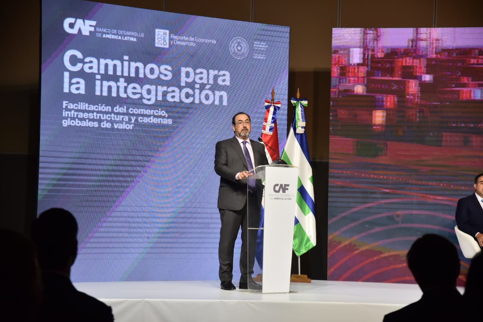 Estos son algunos de los hallazgos del Reporte de Economía y Desarrollo de CAF (RED2021), titulado “Caminos para la integración: Facilitación del Comercio, Infraestructura y Cadenas Globales de Valor”, que se presentó hoy en Paraguay con palabras de apertura del ministro de Hacienda, Óscar Llamosas; el presidente ejecutivo de CAF, Sergio Díaz-Granados; y la vicepresidenta ejecutiva, Carolina España.