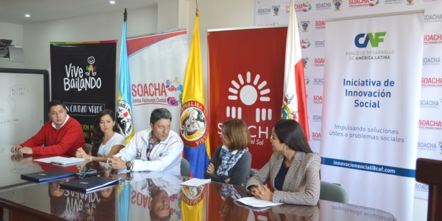 En el lanzamiento del proyecto, celebrado en la Alcaldía Municipal de Soacha, se firmó el convenio de cooperación entre CAF -Banco de Desarrollo de América Latina- y la Fundación Vive Bailando.