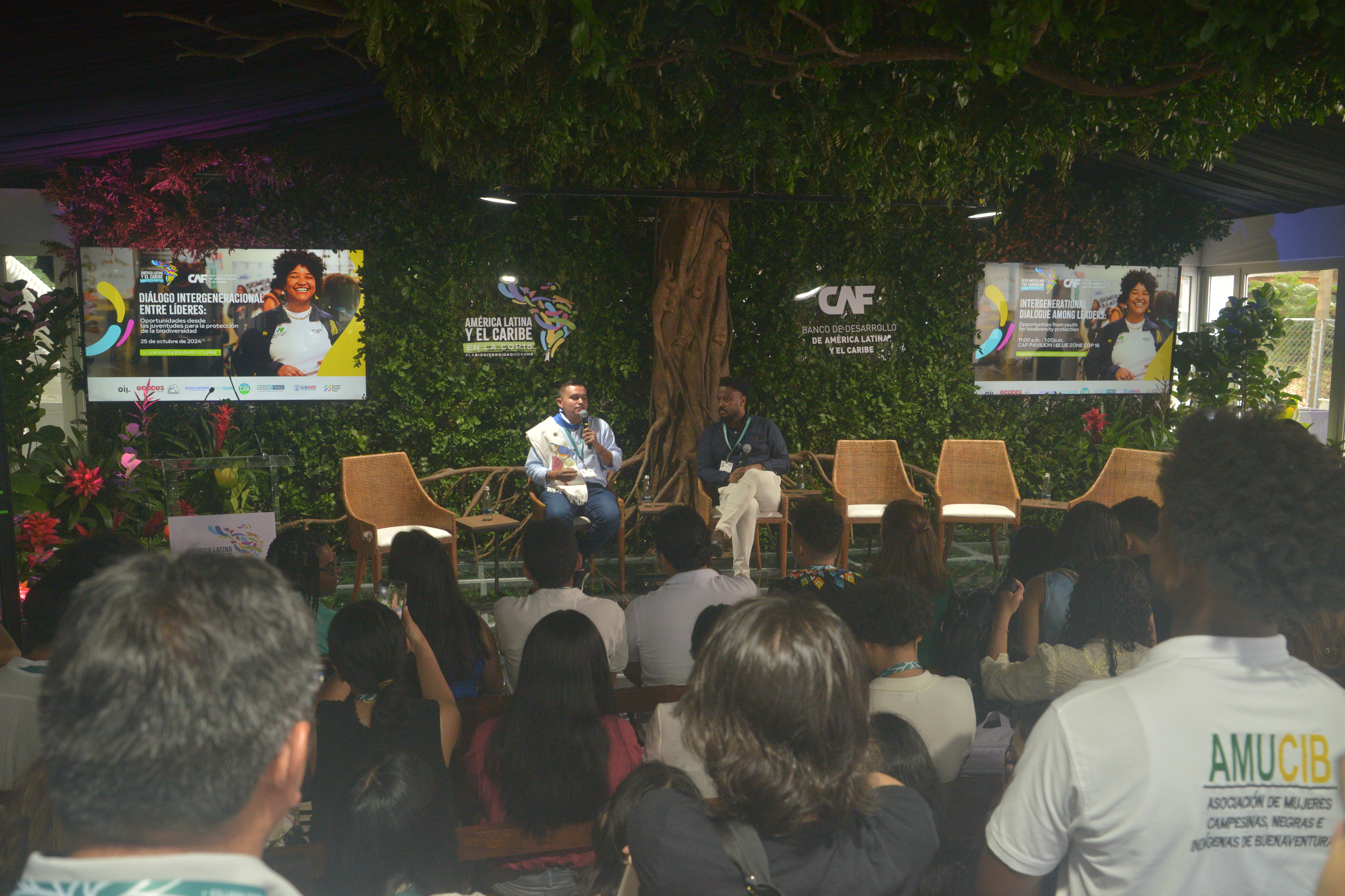 Líderes juveniles y representantes de comunidades étnico-raciales de diferentes países de la región se dieron cita en el Pabellón de CAF en la COP16 de Cali para para fomentar un diálogo intergeneracional y explorar acciones conjuntas en defensa de la biodiversidad y la sostenibilidad en América Latina y el Caribe.