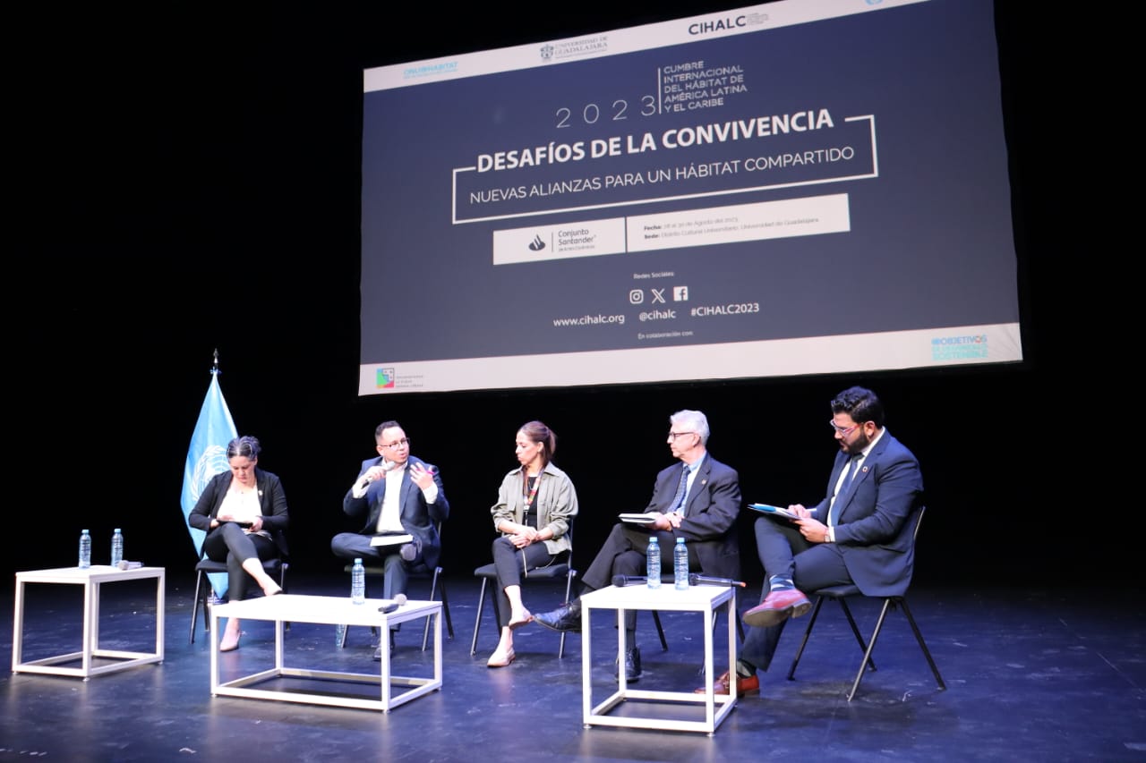CAF-Banco de desarrollo de América Latina y el Caribe, junto a diferentes organizaciones del Sistema de Naciones Unidas (la OCR, CEPAL, CINU, OIM, ONU HABITAT, ACNUR, UNODC y UNOPS) presente en la Segunda edición de la Cumbre Internacional del Hábitat de América Latina y el Caribe CIHALC, desarrollado del 28 al 30 de agosto en el Conjunto Santander de Artes Escénicas de la Universidad de Guadalajara, participando en distintos espacios de discusión junto a gobiernos, academia, sociedad civil y expertos para intercambiar experiencias, buenas prácticas e identificar soluciones para el hábitat y el logro de los Objetivos de Desarrollo Sostenible en las ciudades.