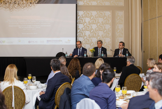 Estos eventos fueron organizados por el proyecto Ecobanking del CLACDS, INCAE Business School y CAF-Banco de Desarrollo de América Latina a través de su Programa de Gestión Ambiental y Social para Instituciones Financieras (PGASIF), en colaboración con la Iniciativa Financiera de ONU Medio Ambiente (UNEP FI, por sus siglas) y la Asociación de Bancos en Instituciones Financieras de Chile (ABIF).