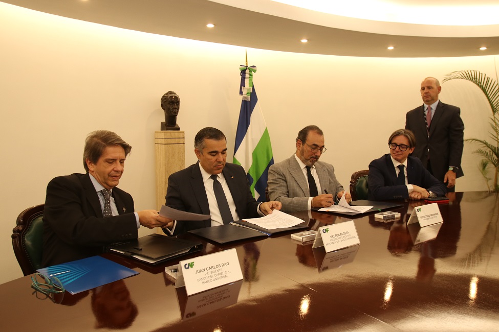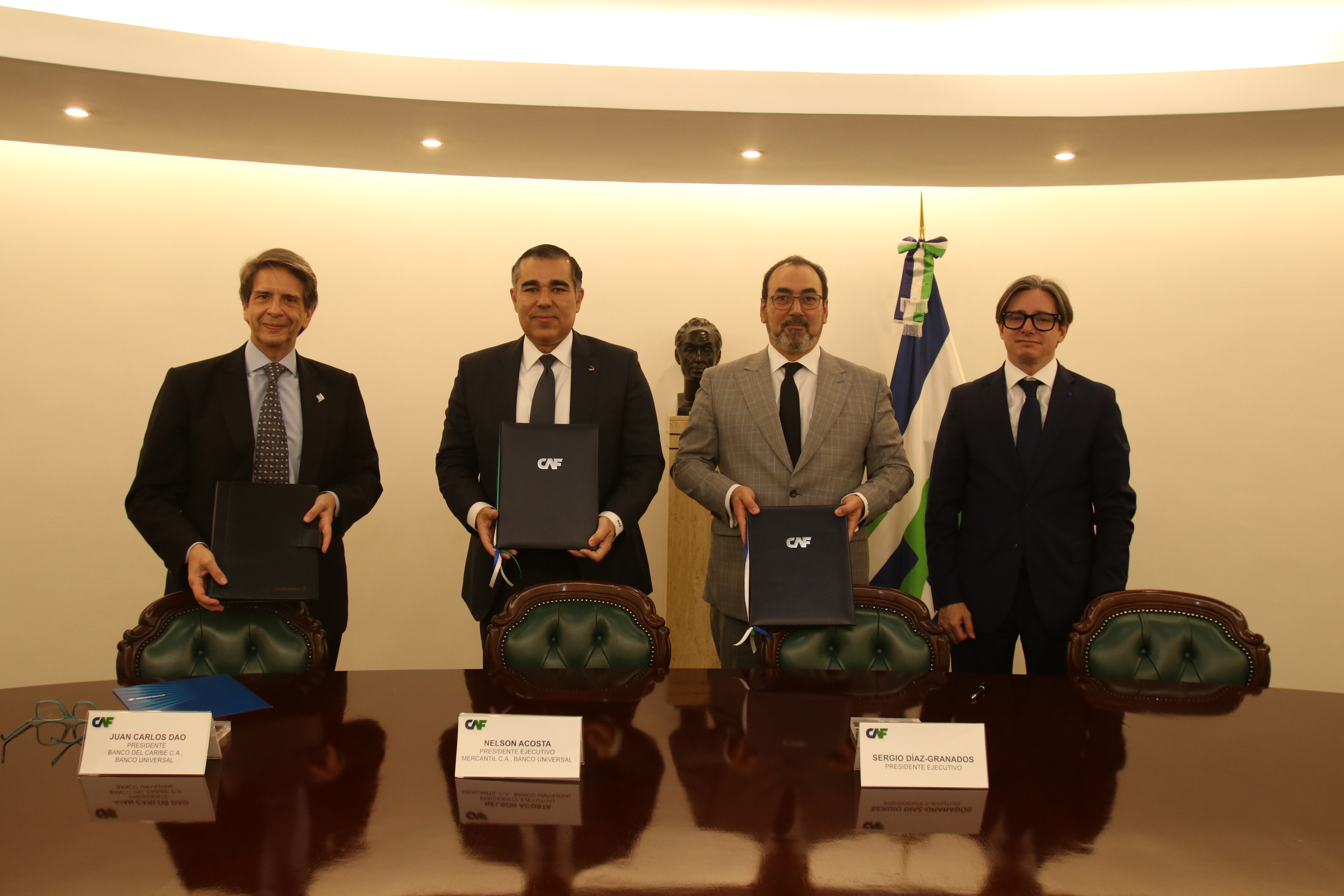 La firma de los convenios de suscripción de acciones de capital ordinario estuvo liderada por el presidente ejecutivo de CAF, Sergio Díaz-Granados, el presidente ejecutivo del Mercantil Banco Universal, Nelson Acosta; y el presidente de Bancaribe, Juan Carlos Dao.
