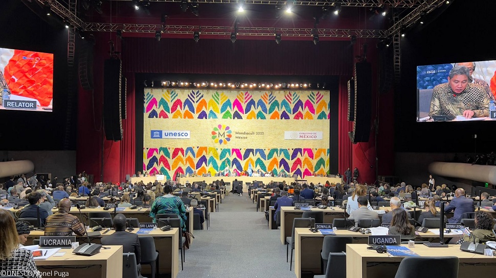 El día de hoy se llevó a cabo la clausura de la Conferencia Mundial de la UNESCO sobre Políticas Culturales y Desarrollo Sostenible-Mondiacult 2022, donde participaron Alejandra Frausto, secretaria de Cultura de México, Marcelo Ebrard, secretario de Relaciones Exteriores, Santiago Irazabal, presidente de la Conferencia General de la UNESCO, Audrey Azoulay, directora general de la UNESCO, y el relator Hilmar Fahrid viceministro de cultura de Indonesia.