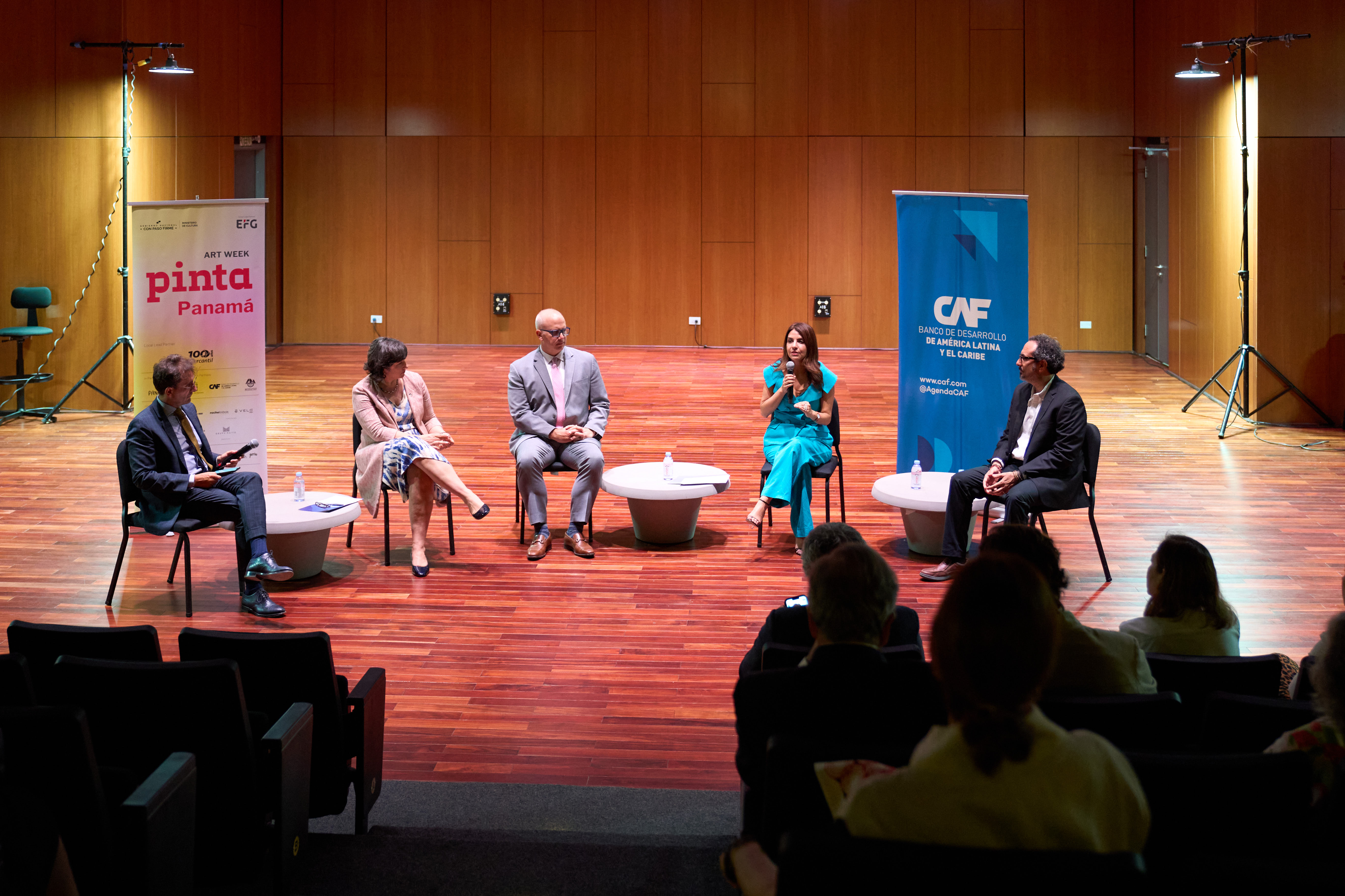 En este marco, CAF – banco de desarrollo de América Latina y el Caribe – participo en el acto inaugural a través del conversatorio de alto nivel “Arte Latinoamericano como motor de desarrollo y diplomacia cultural”, organizado junto a CC Latam. El encuentro reunió a destacadas voces de la diplomacia y la cultural regional y global, entre ellas: Alejandra Claros Borda, secretaria general de CAF; Izabela Matusz, embajadora de la Unión Europea en Panamá; Terry K. Harvey, vicepresidente del Meridian Center for Cultural Diplomacy y Billy Heron, vicepresidente de la Fundación Danilo Pérez.