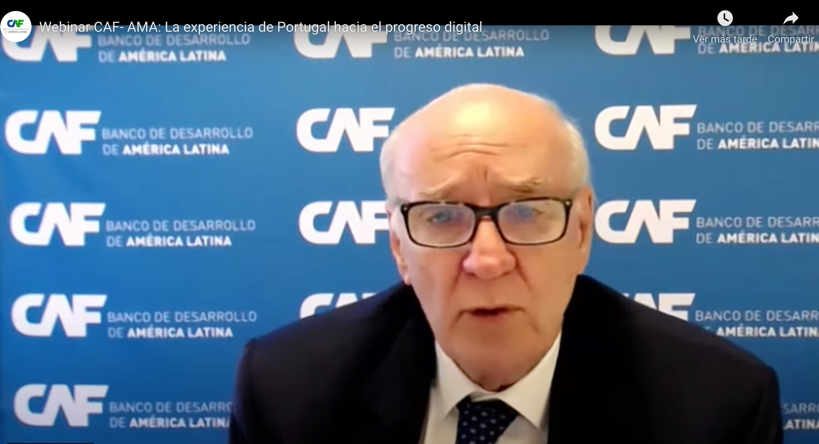 Con el objetivo de compartir la experiencia de Portugal en la implementación de su estrategia de transformación digital, CAF, banco de desarrollo de América Latina, publicó “Leapfrogging Digital Transformation Portugal" un informe que analiza las características específicas de esta estrategia y ofrece recomendaciones basadas en esta experiencia para los países de América Latina y el Caribe. Bajo esta premisa, CAF y AMA -Agencia para la Modernização Administrativa– han organizado el webinar “La experiencia de Portugal hacia el progreso digital”, en el que se conversó acerca de la forma en que este país lideró su transformación digital y se definieron los elementos principales a través de los cuales consiguió impulsar su estrategia de gobierno digital.