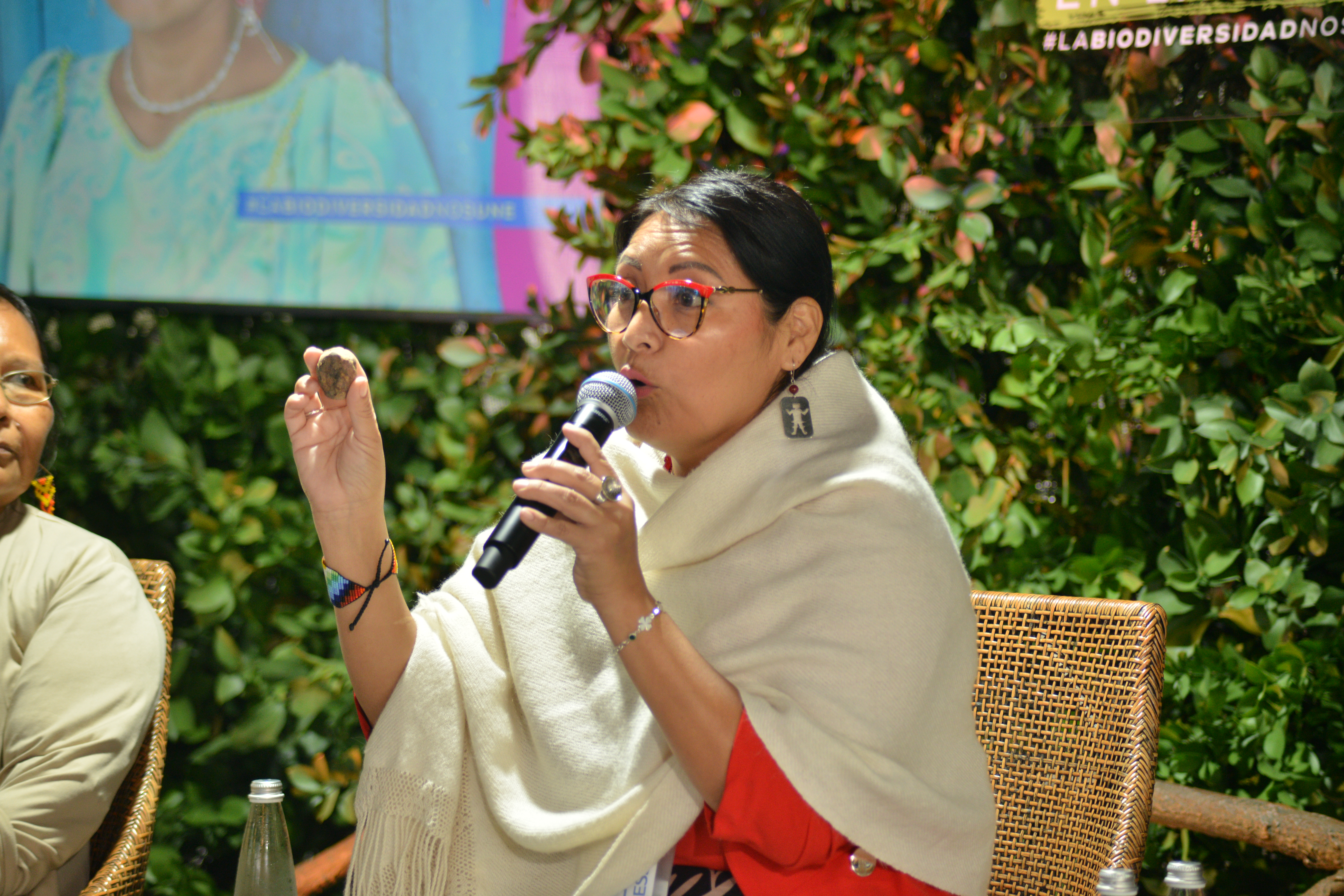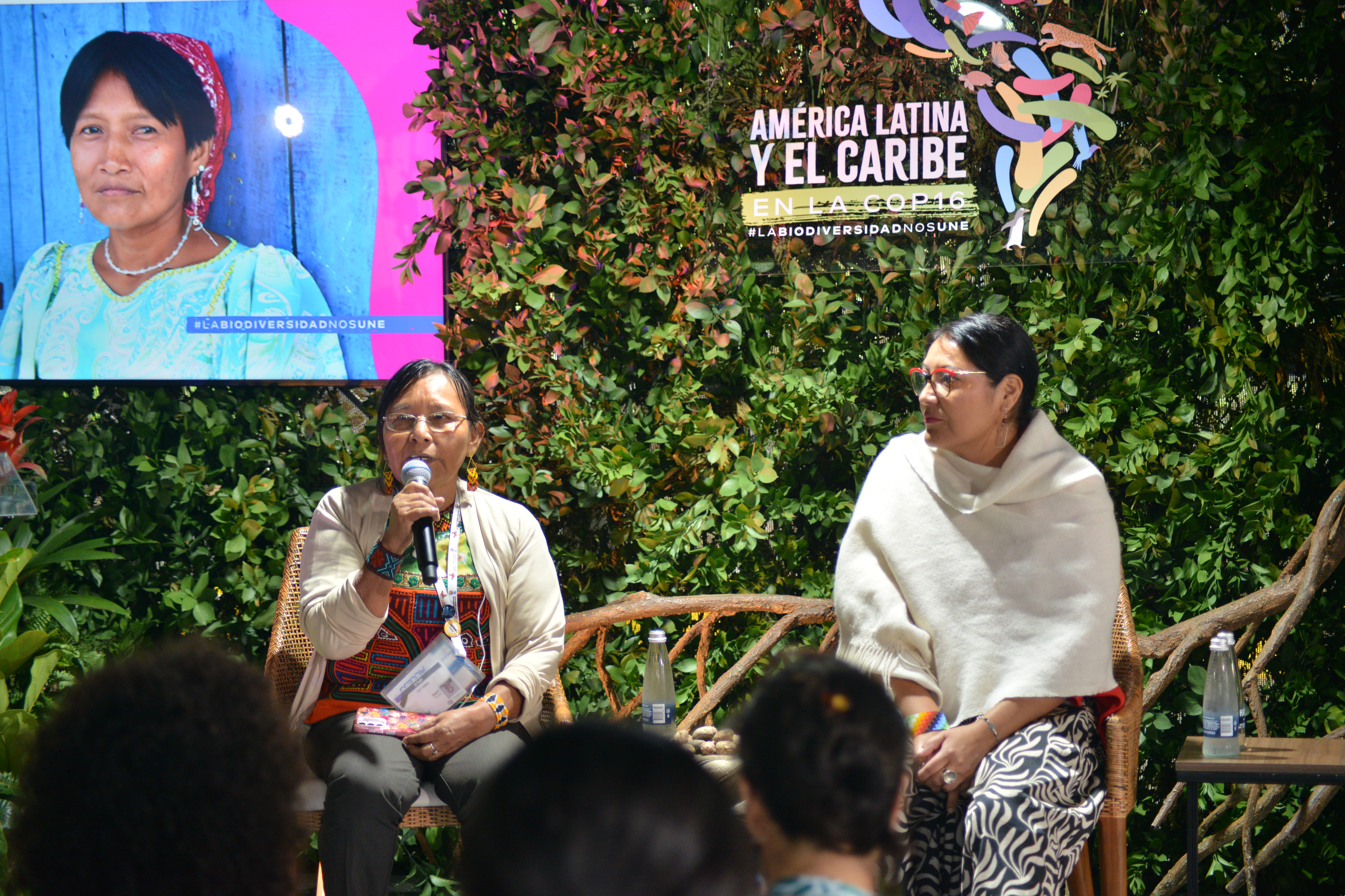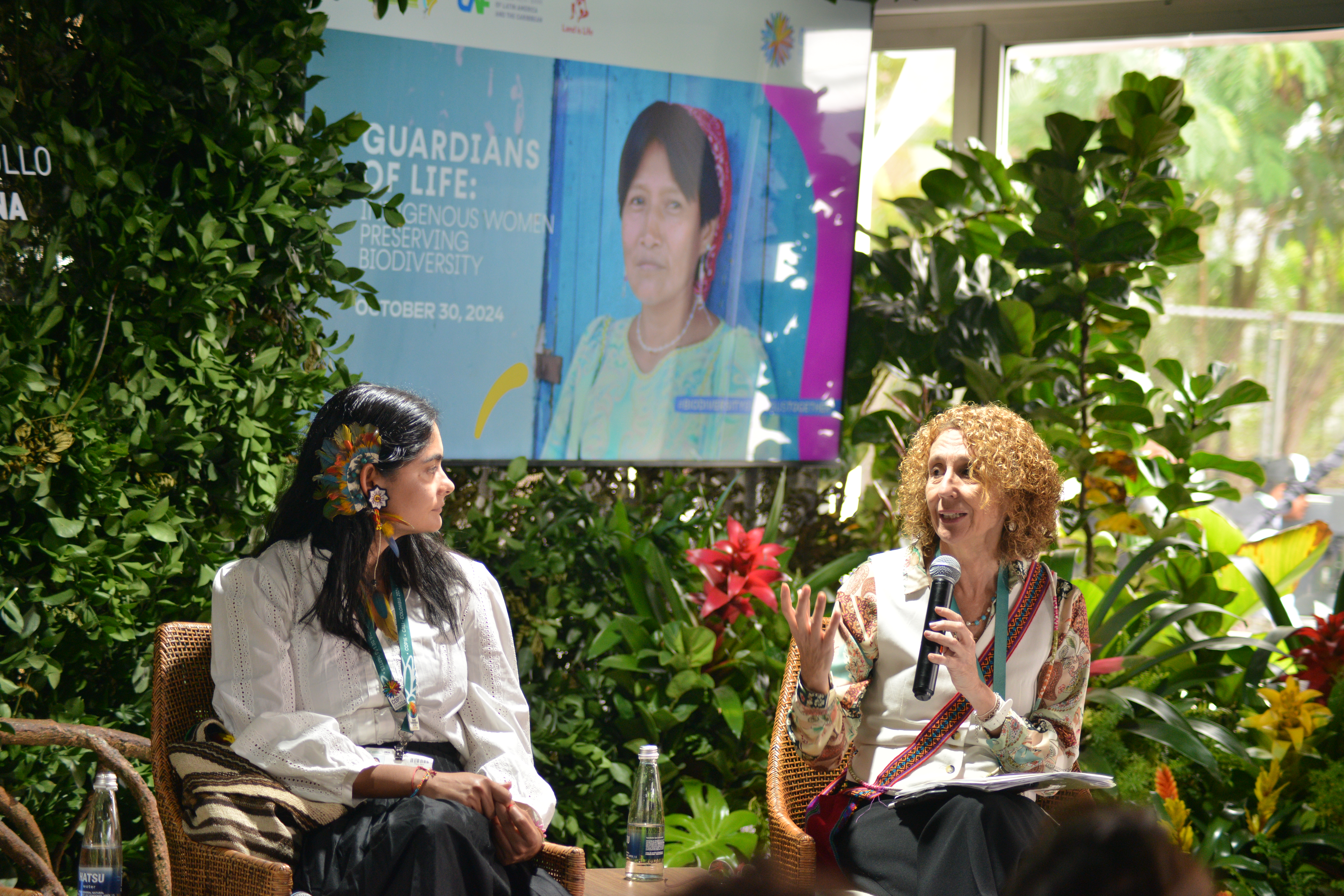 El encuentro en el pabellón #LaBiodiversidadNosUne de CAF visibilizó los aportes de las mujeres indígenas en la protección de la biodiversidad de América Latina y el Caribe, y compartió experiencias y estrategias para fortalecer su liderazgo en la defensa de sus territorios. El panel también abordó temas como la red de mujeres indígenas, los retos y desafíos de las mujeres indígenas en el tema de la biodiversidad y las experiencias de trabajar con mujeres indígenas en estrategias globales y locales.