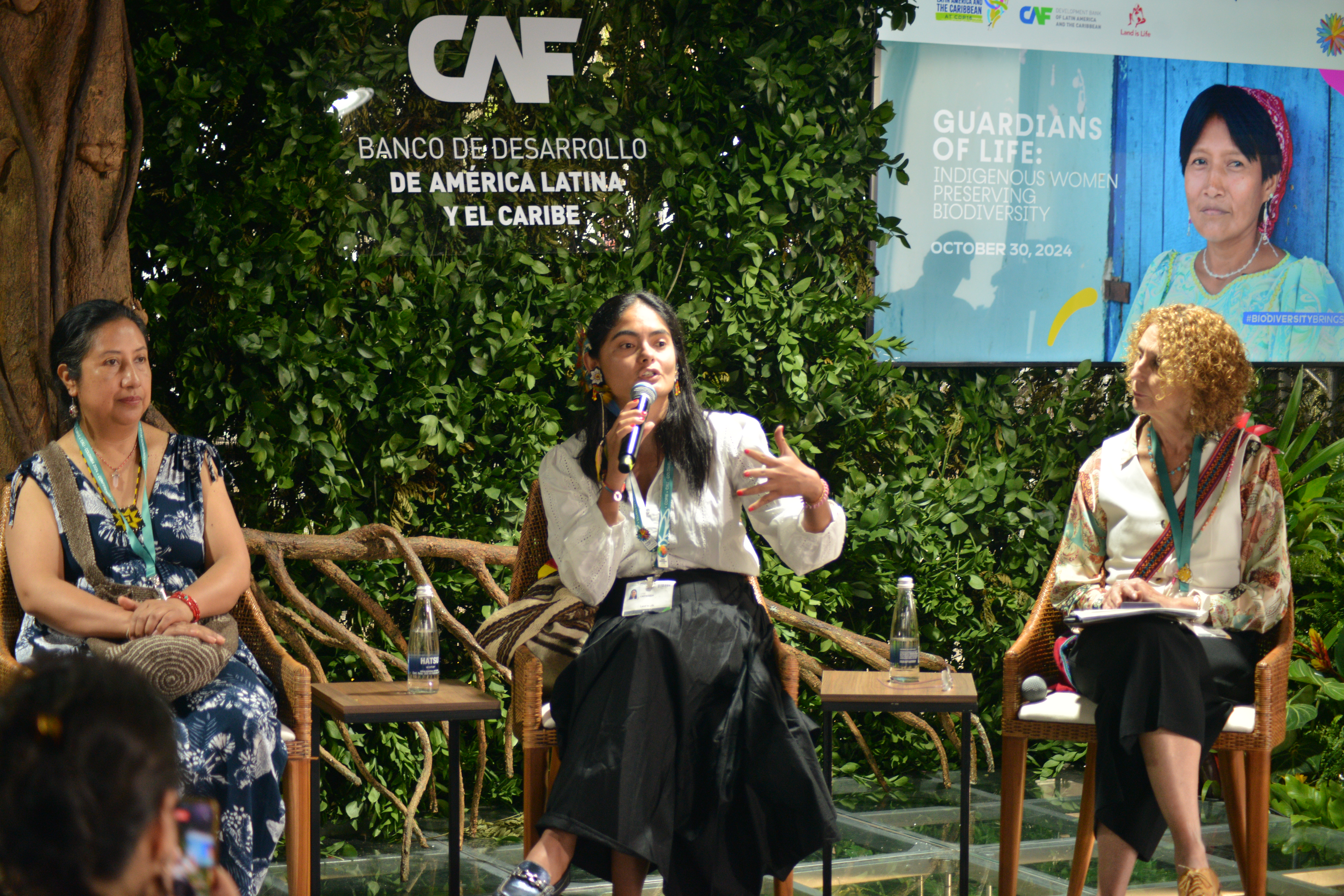 CAF -banco de desarrollo de América Latina y el Caribe-, reunió en la COP16 a mujeres indígenas de la región para destacar su rol crucial en la protección de la biodiversidad. A través de sus conocimientos ancestrales y prácticas sostenibles, las mujeres indígenas de la región son guardianas de los territorios con mayor biodiversidad en el planeta.
