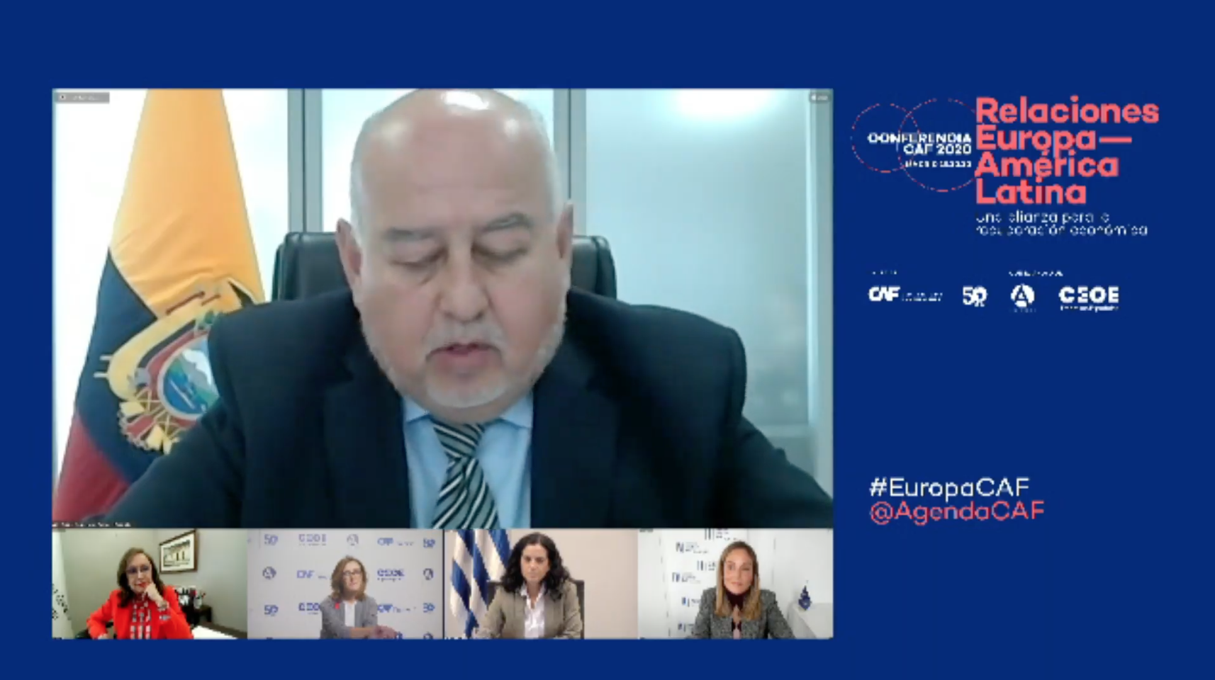“Necesitamos canalizar nuevos recursos y llevar adelante proyectos en temas digitales y de integración regional que pueden significar la diferencia entre perder 10 años por la pandemia y retomar el impulso del crecimiento y del desarrollo de la región. La cooperación y las alianzas estratégicas entre los países de la Unión Europea y América Latina serán importantes para superar esta crisis”, dijo Luis Carranza, presidente ejecutivo de CAF -banco de desarrollo de América Latina.