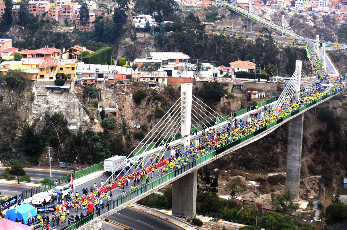 La competencia inició a las 8:00 en la Plaza Villarroel, desde donde una marea amarilla -por la camiseta oficial- tomó calles y avenidas de la ciudad.