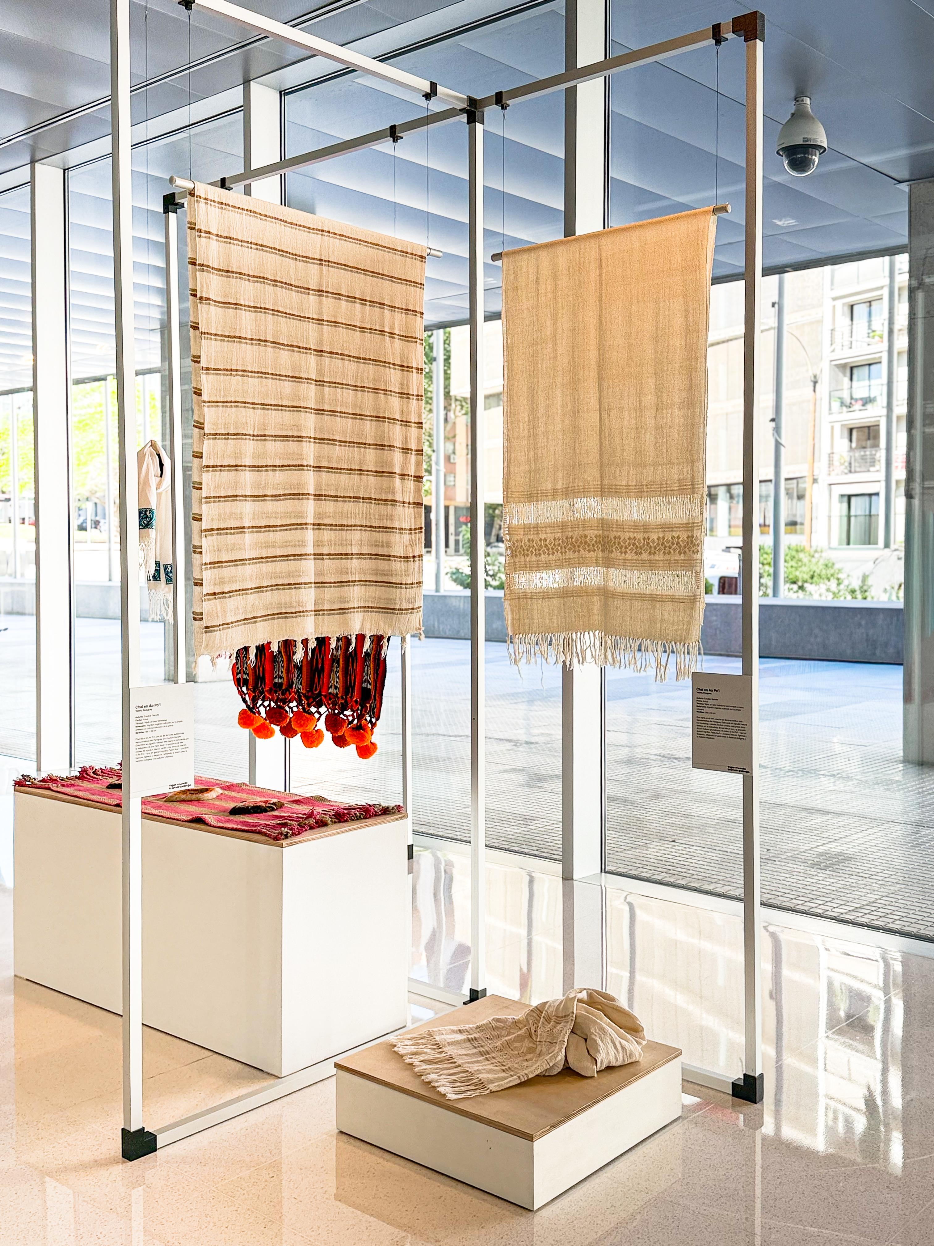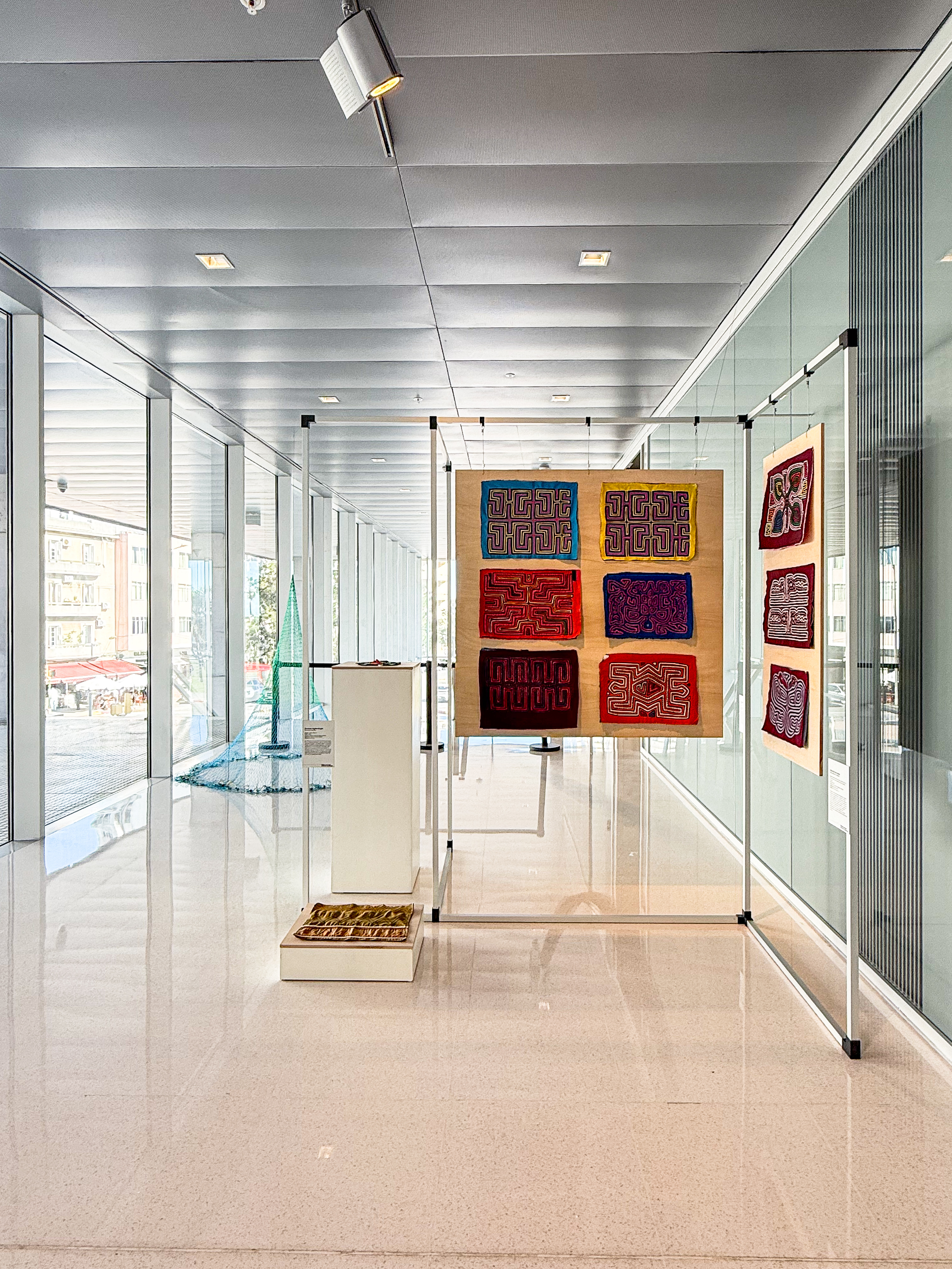 Curada por Emiliano Valdés y con expografía de Nicolás Infanzón, la muestra entiende el tejido como pensamiento material, archivo cultural y acto de resistencia. Entre las piezas destacan huipiles de Chichicastenango y San Lucas Tolimán (Guatemala), molas gunadule (Panamá/Colombia), sarapes y rebozos (México), chullos, ponchos y taris (Andes y Altiplano), hamacas (Brasil, Paraguay y Panamá), encajes y bordados (Brasil y Perú), así como textiles y bolsos de pueblos Nivaclé y Ayoreo. El itinerario enfatiza técnicas como telar de cintura y de pie, urdimbre complementaria, appliqué inverso, bordado kené y tejidos con fibras de caraguatá y cabuya.