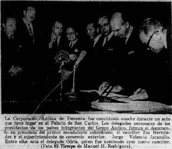 El Tiempo. (08 de 02 de 1968). Creada la Coorporación Andina de Fomento. El Espectador, pág. 1.