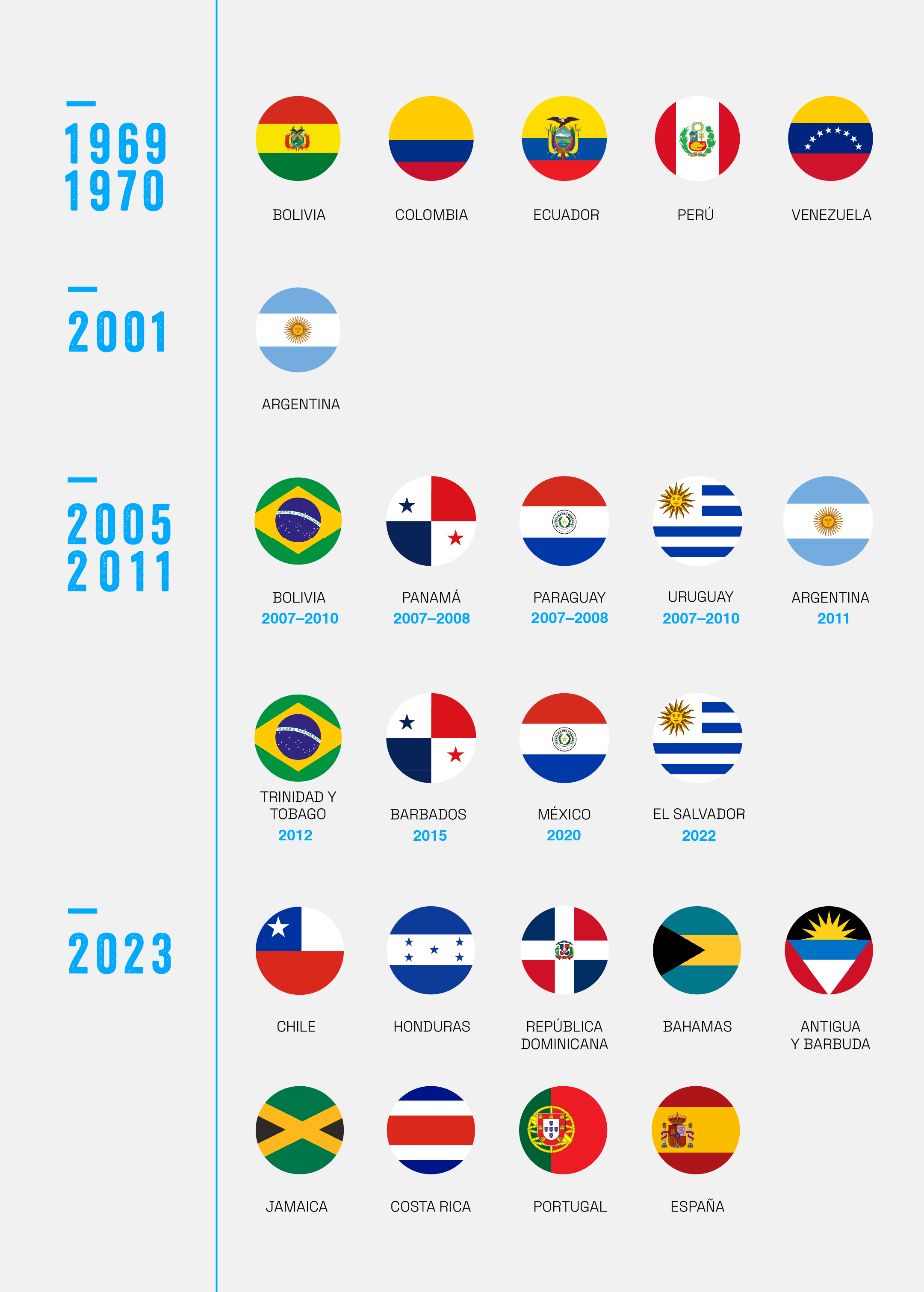 Hoy, con más de 50 años de trayectoria, CAF integra a más de 20 países y ha consolidado su rol como aliado estratégico para la inversión, el desarrollo sostenible y la integración regional. Su historia refleja una evolución constante al servicio de los grandes desafíos de América Latina y el Caribe, siempre con la visión de construir una región más próspera, equitativa y sostenible para las generaciones presentes y futuras.