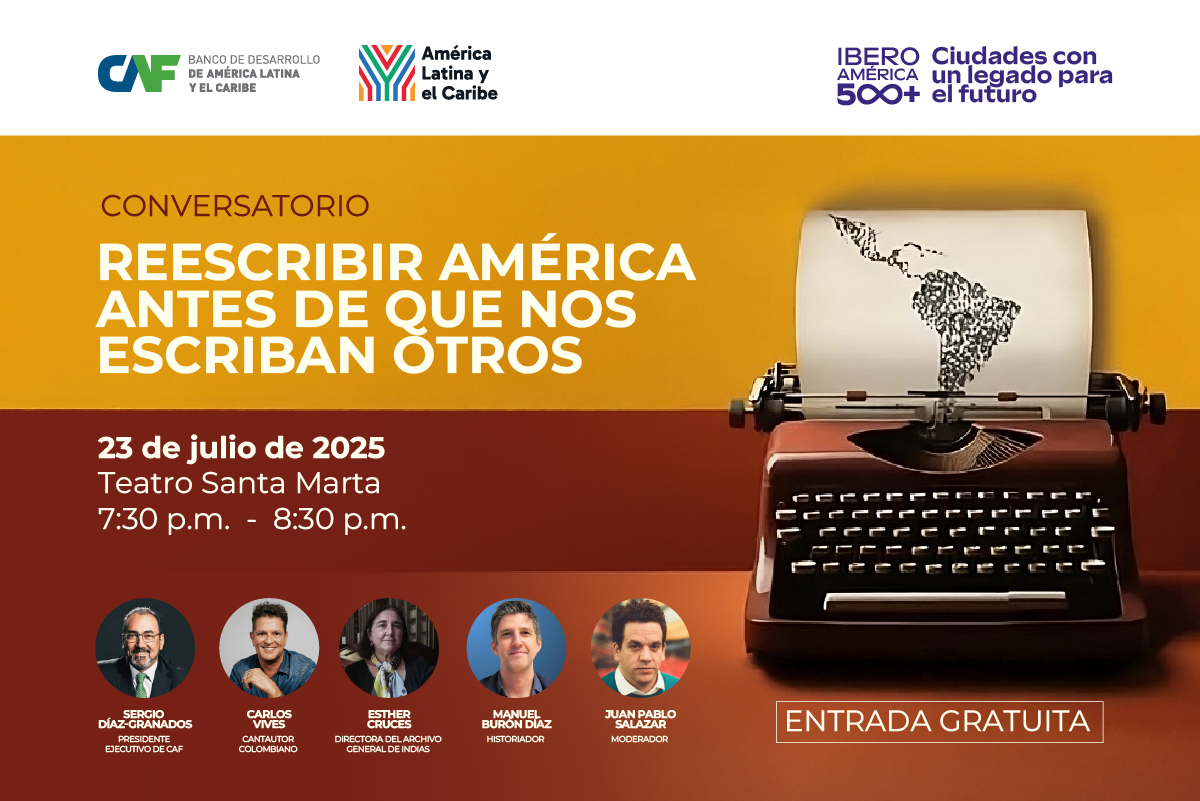 En el marco de las conmemoraciones por los 500 años de la fundación de Santa Marta, CAF –banco de desarrollo de América Latina y el Caribe– invita a la presentación del libro Reescribir América antes de que nos escriban otros, un espacio para repensar la historia iberoamericana desde una mirada reconciliadora, crítica y propositiva.