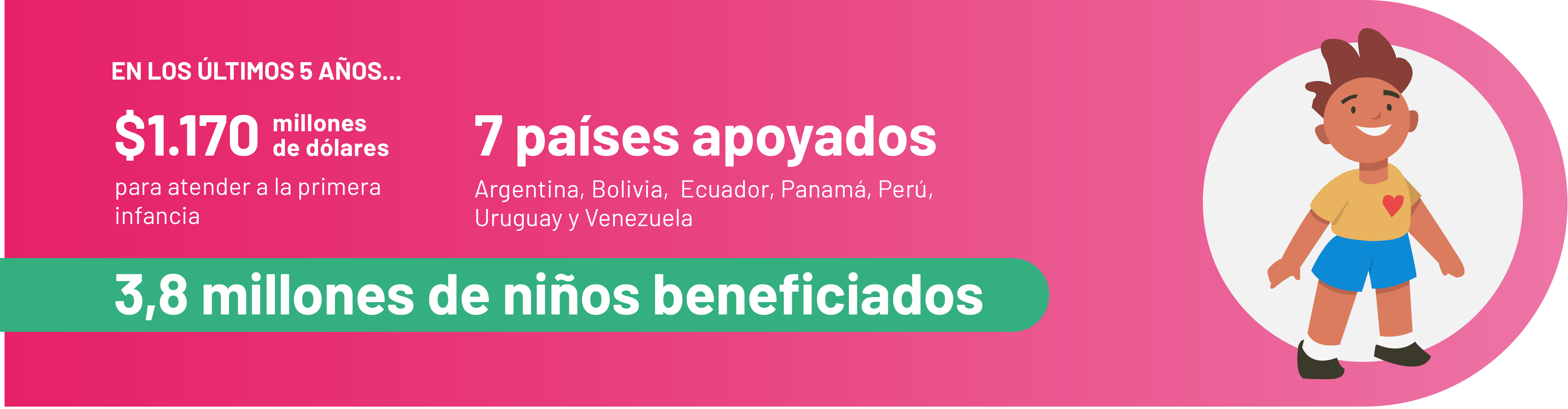Desde 2019, CAF ha aportado USD 1.169 millones para atender a la primera infancia de ALC, apoyando políticas de desarrollo infantil temprano y protección social, así como acciones de promoción de la nutrición y la salud materno-infantil, a través de financiamiento, asistencia técnica y generación y difusión de conocimiento en el desarrollo integral de la primera infancia.