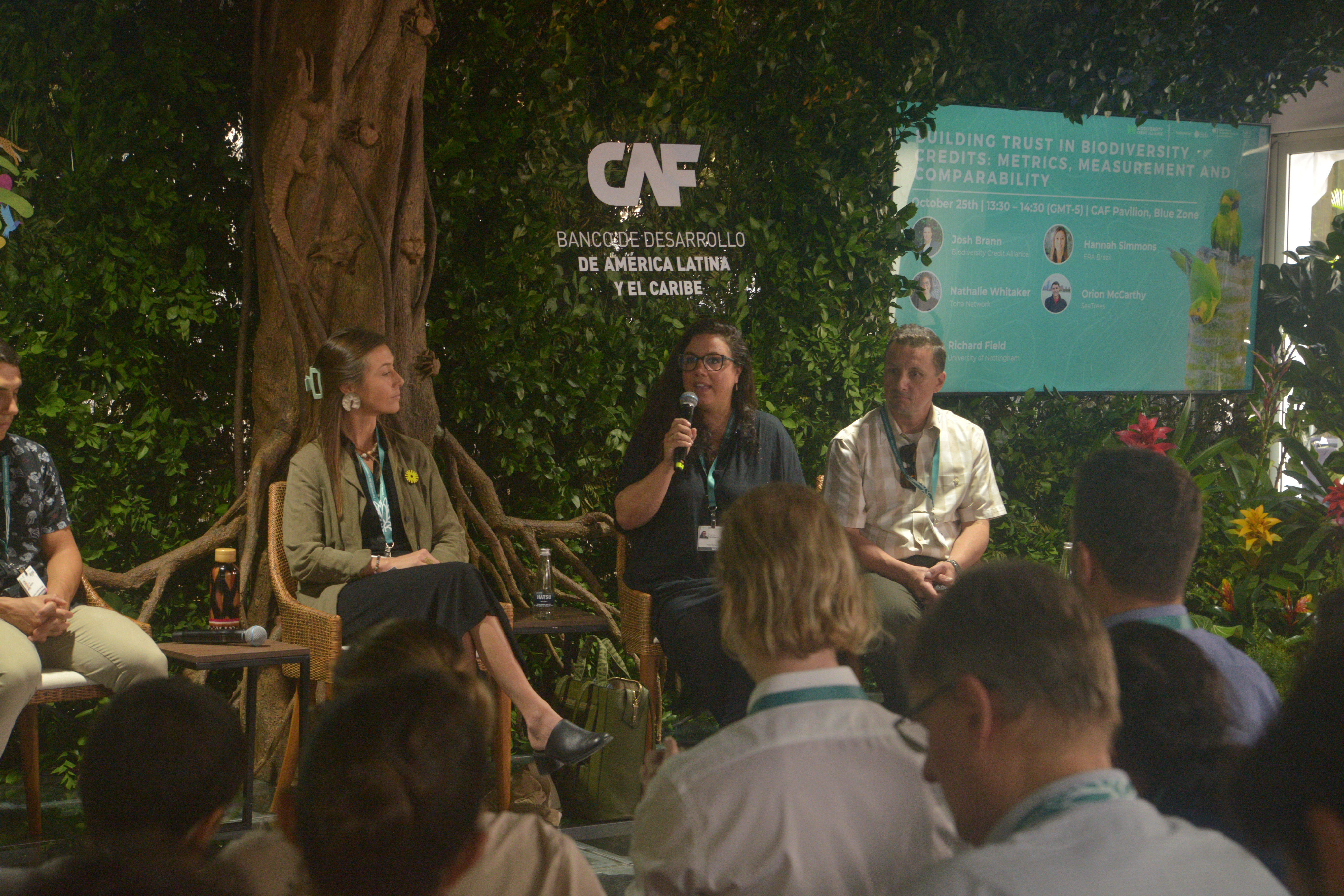 El Día 5 en la zona azul, de la COP16, comenzó con el diálogo "LAC y sus sistemas de monitoreo de bosques", donde expertos discutieron el papel del monitoreo en la transición hacia una producción agrícola sostenible y libre de deforestación, presentando casos regionales para fortalecer la geolocalización y trazabilidad. Luego, Paraguay presentó sus avances en la protección de la biodiversidad y su estrategia nacional, destacando la restauración de hábitats y el alineamiento con el Marco Global de Biodiversidad. A continuación, se realizó un diálogo intergeneracional que resaltó las oportunidades de las juventudes en la protección de la biodiversidad y el rol del acuerdo de Escazú. La tarde continuó con un evento sobre la importancia de las métricas en los créditos de biodiversidad, presentado por la Biodiversity Credit Alliance. Finalmente, Costa Rica compartió sus logros en erradicación de la deforestación y conservación, seguido de "Canto a la Vida", donde se exploró la influencia de Carlos Vives en la conciencia ecológica, analizando su obra y su iniciativa "Tras La Perla".