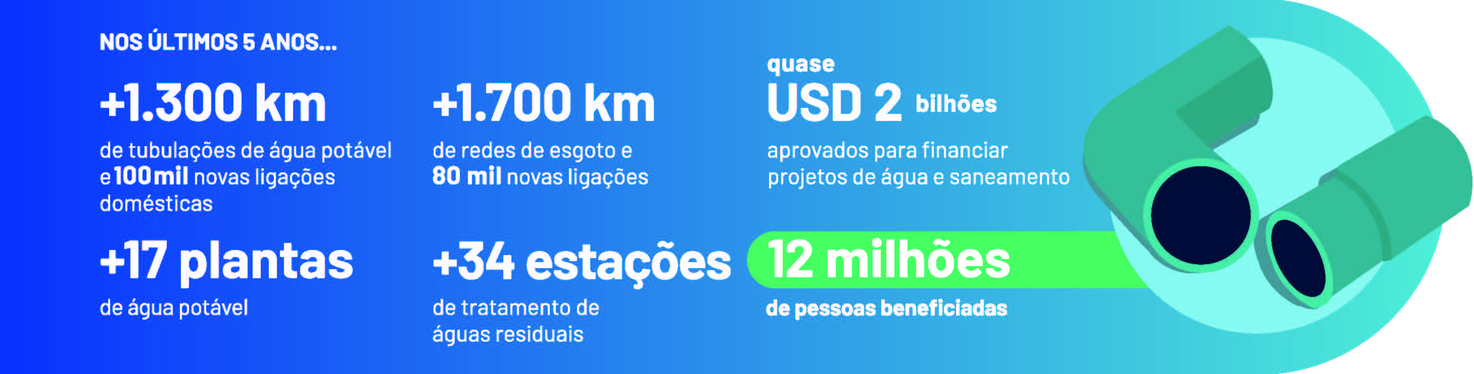 O CAF financiou operações de água e saneamento no valor de USD 2 bilhões nos últimos cinco anos.
