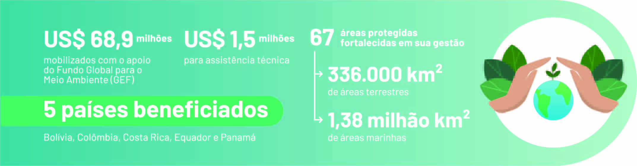 Nos últimos anos, o CAF mobilizou US$ 68,9 milhões com o Fundo Global para o Meio Ambiente (GEF, na sigla em inglês) e prestou assistência técnica no valor de USD 1,5 milhões para fortalecer a gestão de áreas protegidas.