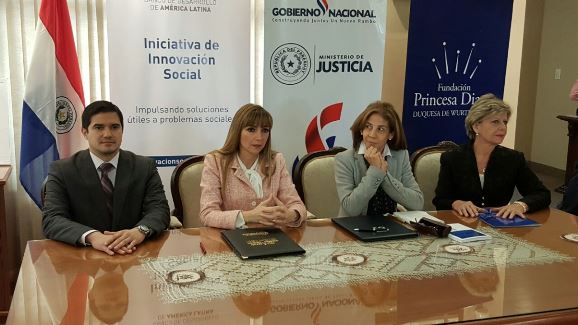 Com a presença de Carla Bacigalupo, ministra da Justiça; Fernando Infante, diretor-representante do CAF -banco de desenvolvimento da América Latina- no Paraguai; Ana Mercedes Botero, diretora de Inovação Social do CAF; e Hilda de Hieber, presidente da Fundação Princesa Diana, foi realizada a cerimônia de assinatura do acordo que fecha a parceria institucional para a elaboração de um modelo colaborativo de empresa social na Penitenciária Nacional Buen Pastor.