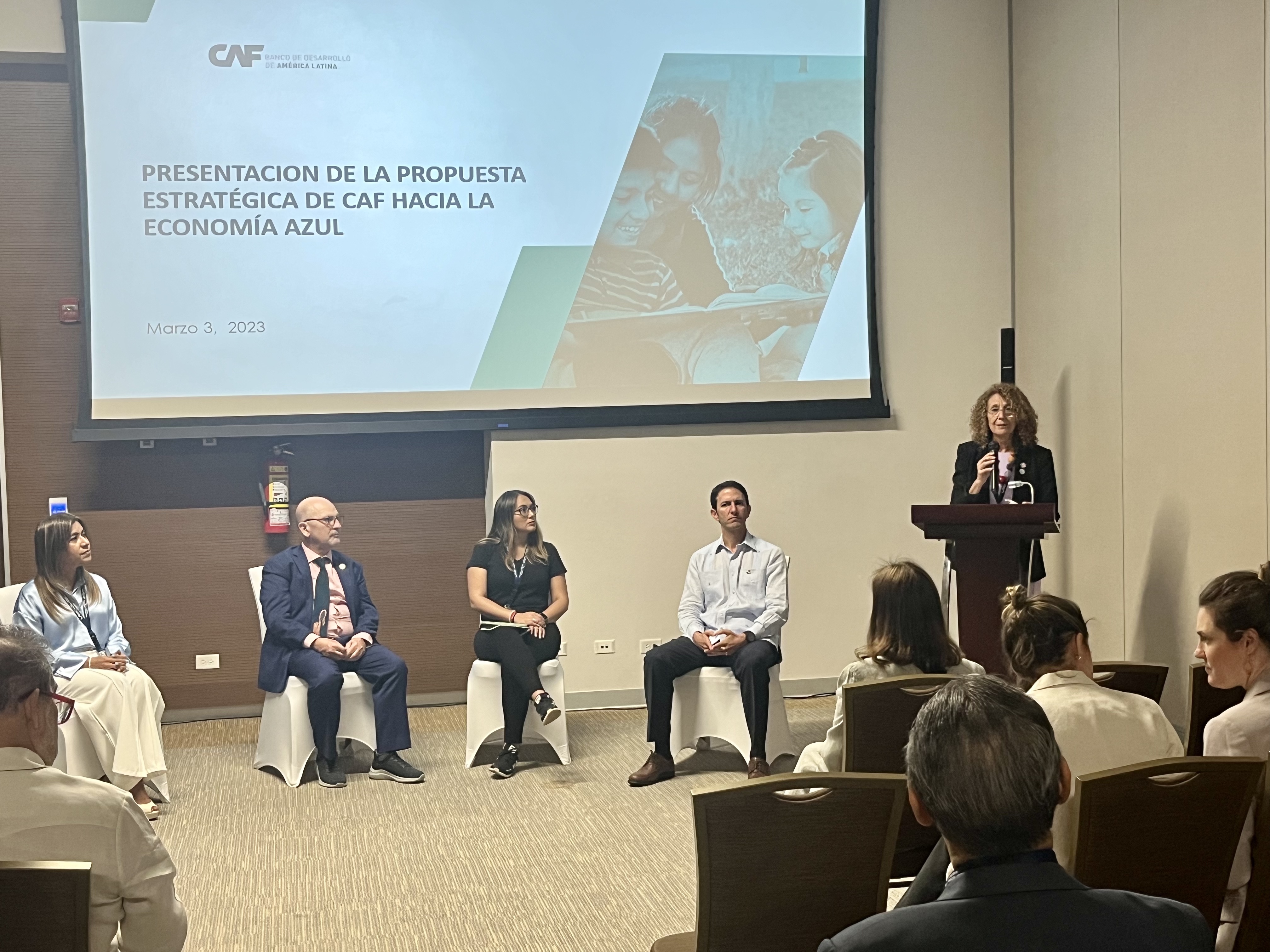 O documento, elaborado pelo Varda Group, servirá de base para a estratégia do CAF com relação aos oceanos e faz parte do compromisso da instituição de ser o banco verde da América Latina e do Caribe, materializada em investimentos verdes de US$ 25 bilhões nos próximos anos. Dentre esses investimentos, US$ 1,250 bilhão serão para implementar projetos que promovam a economia azul, com ênfase na restauração de ambientes marinhos e costeiros, no carbono azul, na energia marinha renovável, na pesca e na aquacultura sustentáveis.