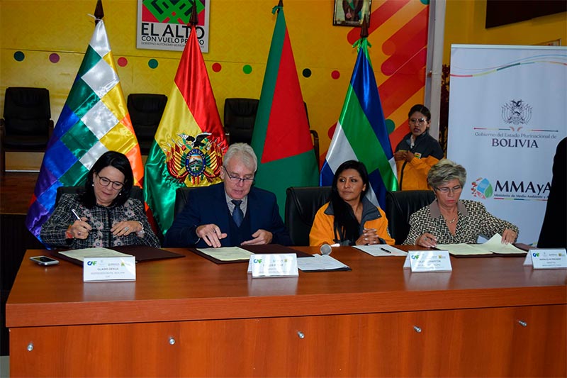 O evento foi realizado com a presença do ministro do Planejamento, Carlos Díaz; a Ministra do Meio Ambiente e Água, María Elva Pinckert; a prefeita do Governo Municipal Autônomo de El Alto (GAMEA), Soledad Chapetón; e a representante do CAF na Bolívia, Gladis Genua. O custo total do projeto será superior a USD 15 milhões, dos quais a entidade financeira internacional cobrirá 76,46% e o restante (cerca de USD 3,5 milhões) será aportado pela Prefeitura, a contraparte local. A obra inclui a construção da estação, em duas fases, e a instalação do duto que escoará as águas residuais (1,8 km de extensão).
