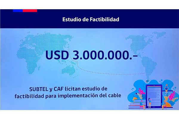 O Ministério dos Transportes e Telecomunicações (MTT) e o CAF -banco de desenvolvimento da América Latina- assinaram hoje um Acordo de Cooperação Técnica no valor de US$ 3 milhões ($ 2,1 bilhões) para financiar os estudos de viabilidade do Projeto de Integração de Cabos Submarinos: “Conexão Digital Ásia – América do Sul”.