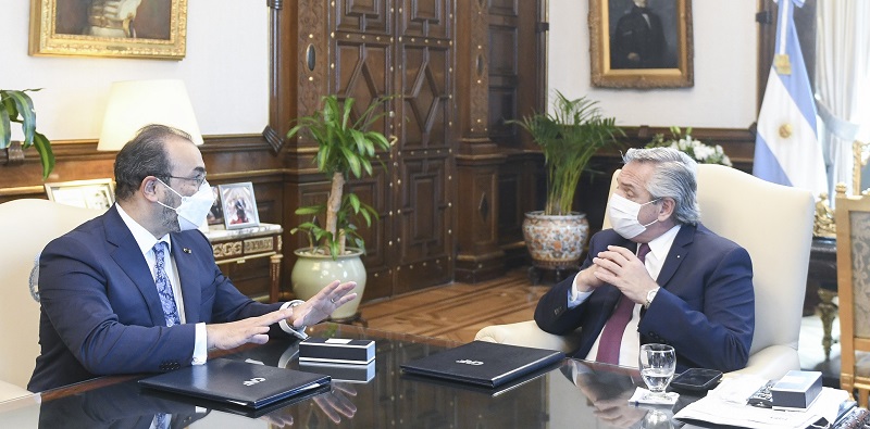 Com o objetivo de melhorar a qualidade de vida da população fomentando a segurança alimentar, fortalecendo os planos de vacinação, infraestrutura educacional, além de promover a reativação econômica e social e a criação de empregos por meio de projetos de conectividade digital, aérea, ferroviária e rodoviária, o presidente-executivo do CAF -banco de desenvolvimento da América Latina, Sergio Díaz-Granados, reuniu-se com o presidente da República da Argentina, Alberto Fernández, para assinar oito empréstimos, de mais de US$ 1,1 bilhão.